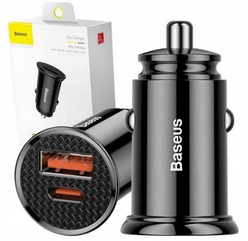 Зарядний пристрій зарядка від прикурювача Baseus 1USB + 1 USB Type-C PD 5.0А QC (30W), чорний Євро